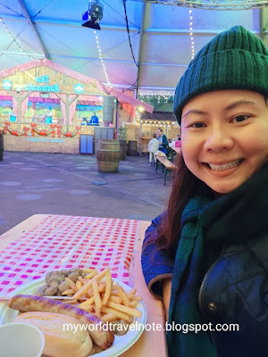 Dinner at Christmas Market. I missed my mulled wine while writing this blog. Mulled wine and a german sausage are my perfect combo at Christmas / winter market.